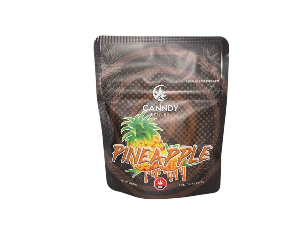 Pineapple 200mg THC Gummies by Canndy Edibles are soft and tasty edibles. These edibles come in a pack of 8 gummies which each contain 25mg of THC. Canndy Edibles provides proper dosing when manufacturing these gummies to give users the opportunity to find their right dose. We suggest users to start small and consume more gradually.