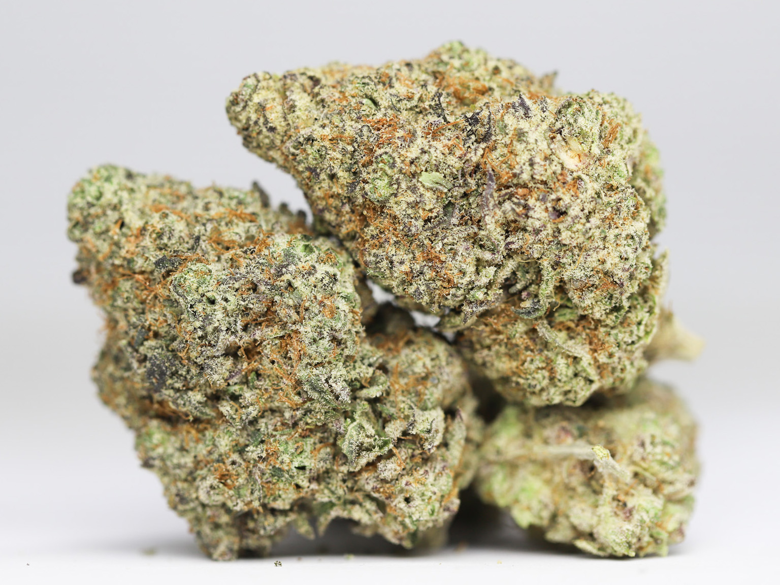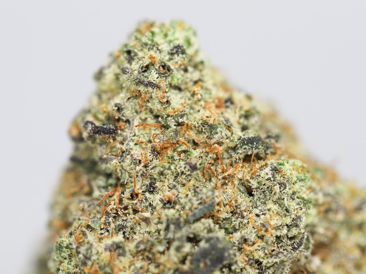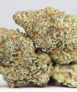 Fuji Sherb is an evenly balanced hybrid strain (50% indica/50% sativa) created through crossing the tasty Apple Fritter X Sunset Sherbet strains. This tasty bud creates the ultimate apple combination alongside a happy, lifted high that will help you feel like everything is all right with the world. The taste of Fuji Sherb is exactly what you’d expect with its amazing parentage, offering a blend of sharp Granny Smith apples, sour citrus and creamy vanilla sherbet. The aroma is just as wonderful, with hints of sugary fruits, sour apples and creamy vanilla pastries. The Fuji Sherb high will wash over you in warming waves of ecstasy, filling your mind with a lifted sense of tranquility and your body with a weighty sense of deep relaxation. You’ll feel carefree and essentially free of any thinking whatsoever as you smile the afternoon or evening away and take in the world around you. A deep physical relaxation wraps things up, locking you to the couch and leaving you pretty immovable at times. In combination with its super high 25-26% average THC level, these effects make Fuji Sherb a great option for treating chronic pain, chronic stress or anxiety, depression and insomnia. This bud has fluffy and dense, popcorn-shaped emerald-green nugs with thin bright orange hairs and chunky, minty-white crystal trichomes.