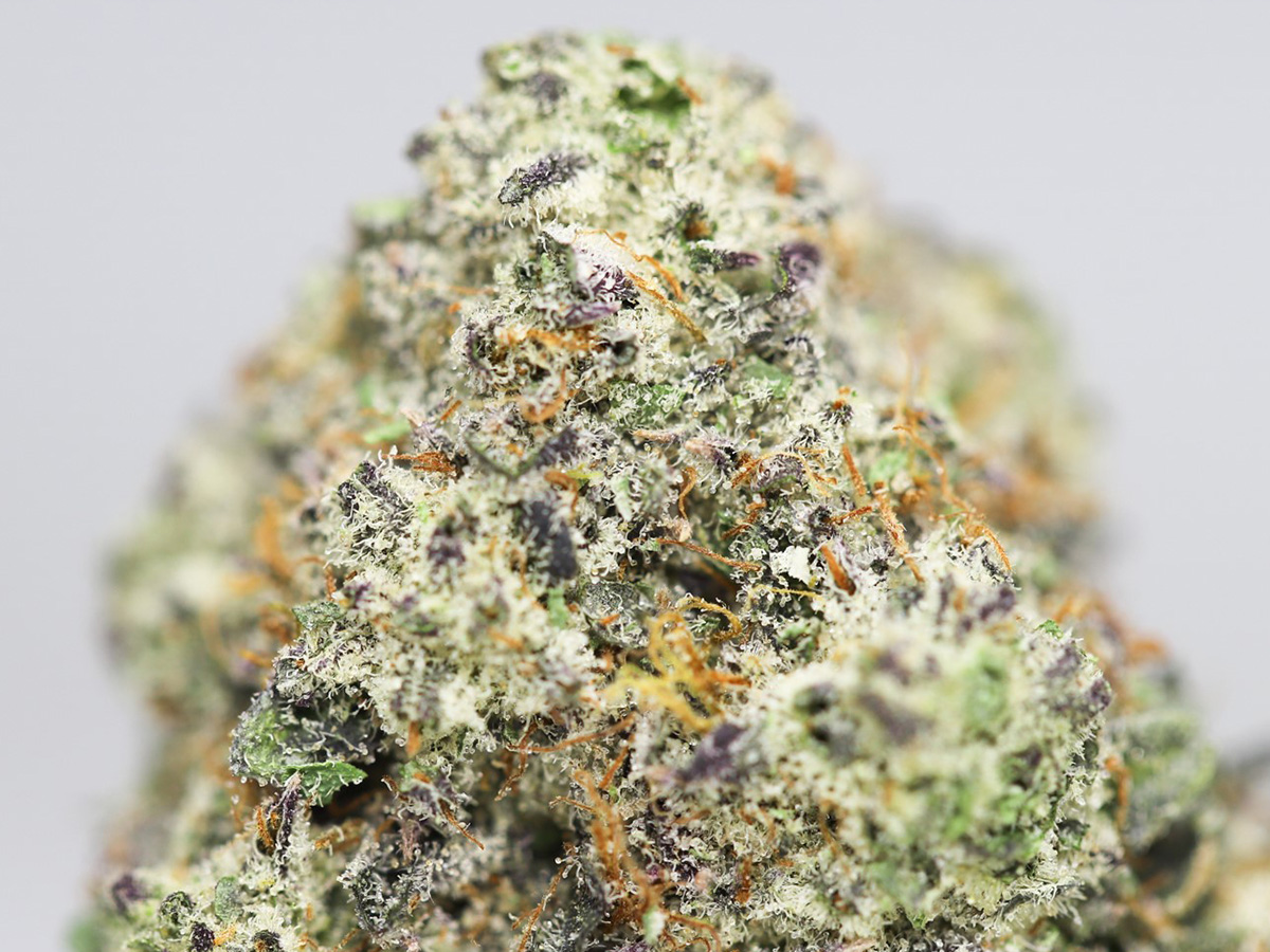 Grapes N Cream, also known as “Grapes and Cream,” is an evenly balanced hybrid strain (50% indica/50% sativa) created through crossing the delicious Grape Pie X Sundae Driver strains. This celebrity child boasts a super mouthwatering flavor and a heavy-hitting high that will have you flying high before dropping you right back down into sweet sedation. Like its name suggests, Grapes N Cream has a sweet and creamy sugary vanilla flavor that’s accented by fresh and fruity grapes and cherries. The aroma is just as delicious, with a spicy grape overtone that’s accented by sweet and sugary fruits. The Grapes N Cream high comes on a few minutes after your final toke, hitting the mind with a sense of creative focus while lulling the body into a state of pure relaxation and ease. You’ll feel your senses sharpen as your creative sense expands, allowing you to access your sociability and easily carry on conversations with those around you. At the same time, a calming body high will work its way into your physical form, helping to ease aching muscles while making you pretty hungry, too. In combination with its high 32% average THC level, these effects make Grapes N Cream perfect for treating depression, nausea or appetite loss, chronic stress or anxiety and inflammation. This bud has fat oversized rounded bright neon green nugs with deep amber undertones, thick orange hairs and frosty golden amber crystal trichomes.